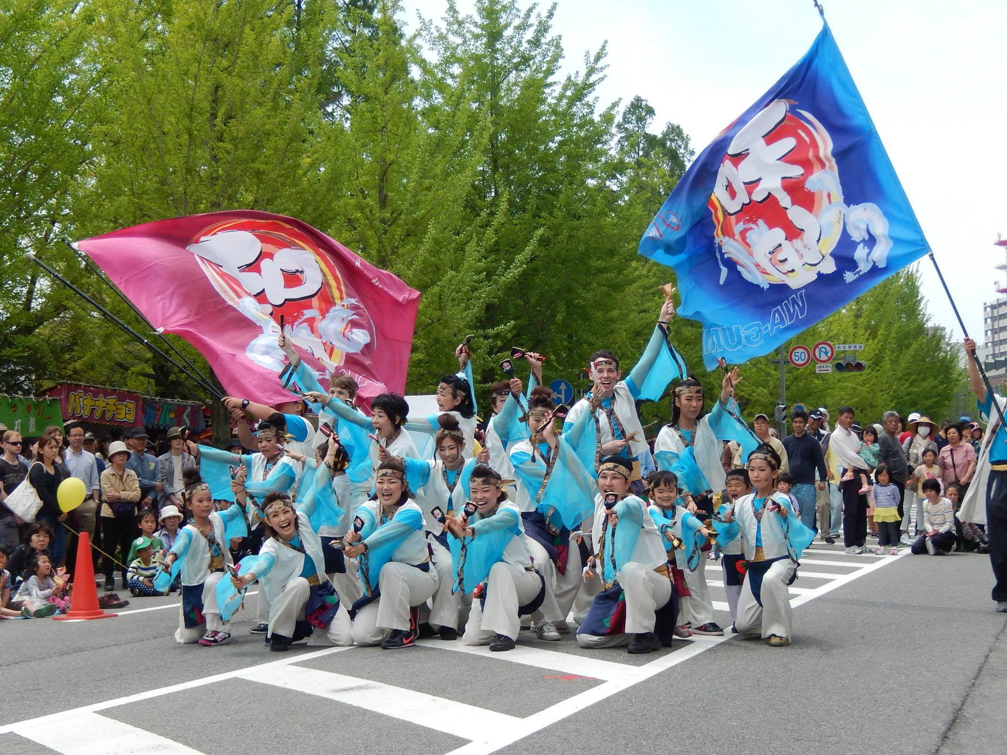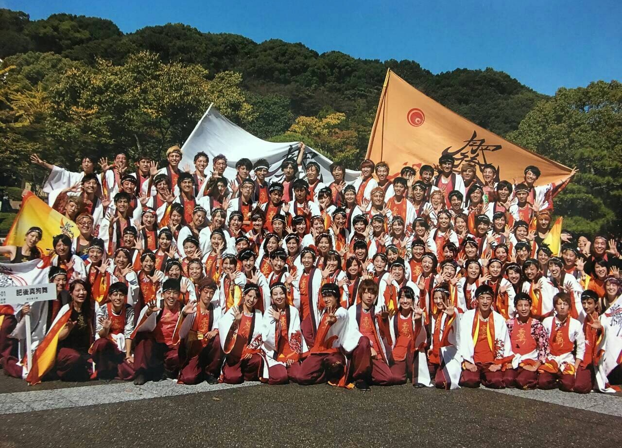 こんにちは。私達は熊本市内の学生を中心に活動している、よさこいチーム肥後真狗舞です。笑顔、元気、楽しむをモットーに盛り上げていきます。手拍子、足拍子、お心拍子、よろしくお願いします。