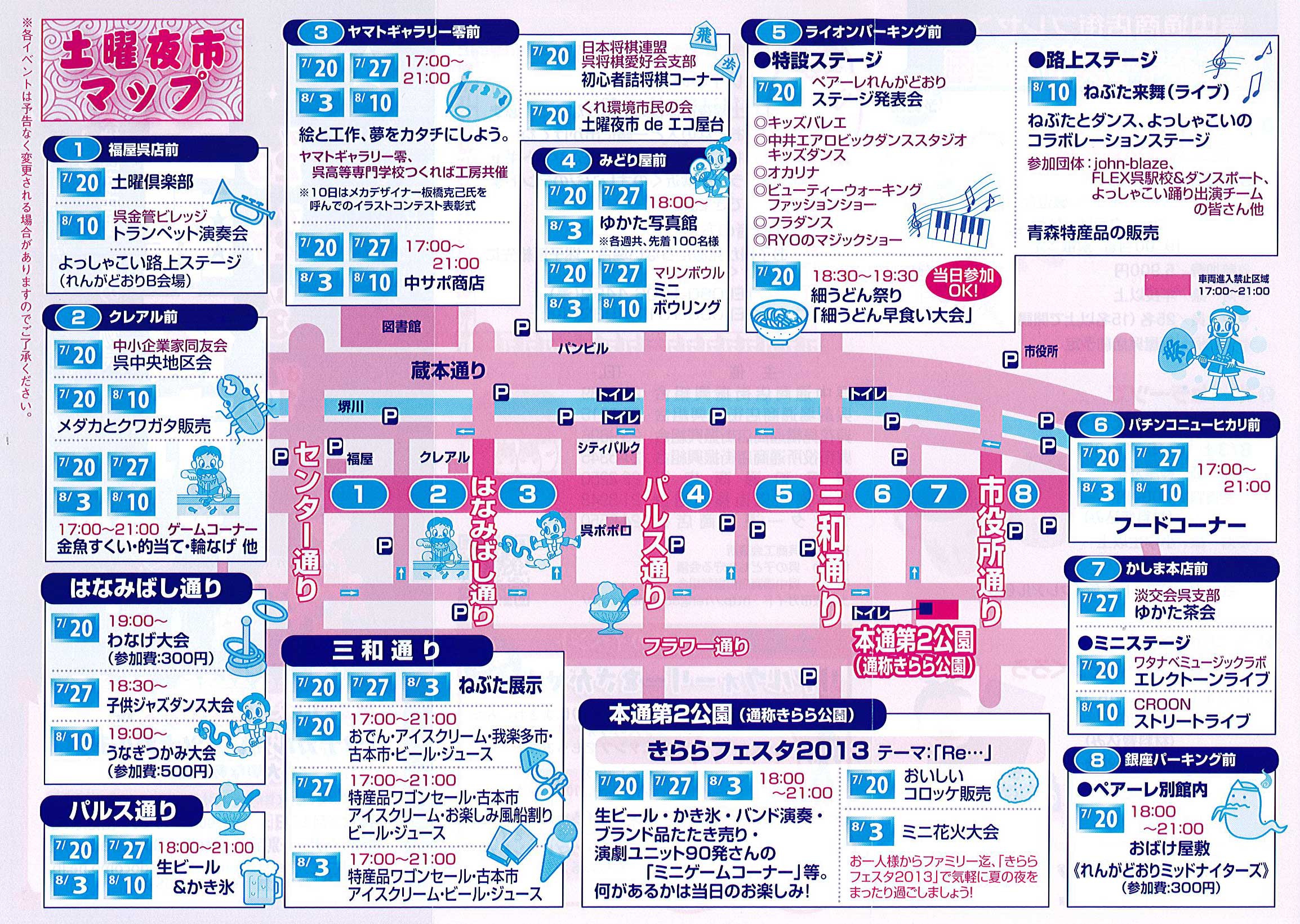 「ねぶた来舞(ライブ)」 2013年8月10日(土) 18:00~21:00 呉れんがどおり土曜夜市イベント (呉中通商店街とよっしゃこい祭運営委員会の共同イベント) 終了しました。 【出演チーム】 わくわくkids二川(呉市) くれ和組(呉市) 新星☆ゆずりはなるこ会(呉市) HOT華蓮(尾道市) 千福・紫琉海都(呉市) YAMATOくれびと(呉市)